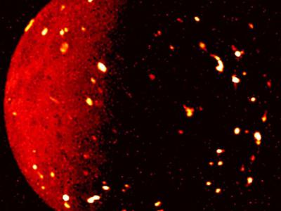 这张揭示木星卫星木卫一北极区域的照片是由美国国家航空航天局的朱诺号于10月15日拍...