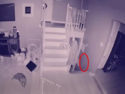 监视器拍到半透明白影来回走动。躺在旁的猫咪对白影没反应。(神秘的地球uux.cn报道...