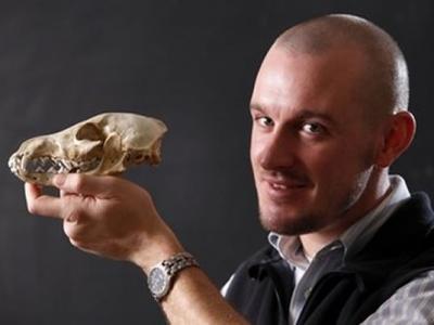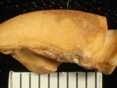 一块哺乳动物头骨化石,牙齿窝里的沉积物,原来是史前蜜蜂筑的巢穴。图片来源:uux...
