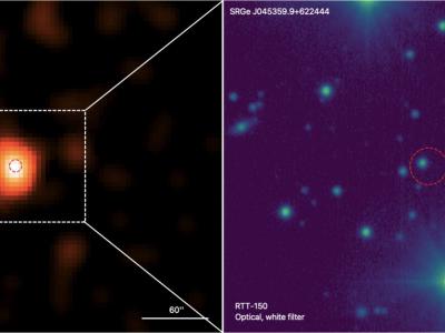 两颗白矮星在合并前的图示(插图)是残余SNR 1181的两个激波区域。(图片来源:uux...