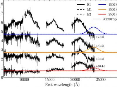 观测和模拟了仙女座 V 717 的光变曲线。蓝色曲线表示 B 波段、绿色、V 波段和红色 ...