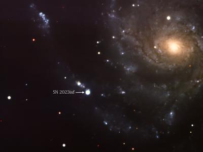 这位艺术家的概念展示了一个假设的事件,称为超千新星。一颗大质量恒星在超新星爆炸...