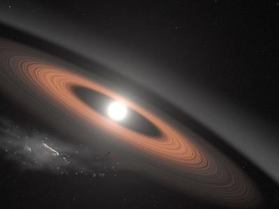 艺术表现恒星北落师门环绕盘中两个行星相撞的过程。图片来源:uux.cn托马斯·穆勒(...