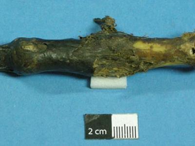 Yuka 的一条腿,说明了去除皮肤后腿的下半部分的特殊保存,这使得古代 RNA 分子能够...