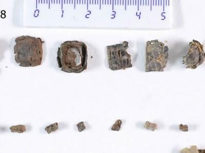 Seven of the recently rediscovered unopened phylactery scrolls from Qumran....