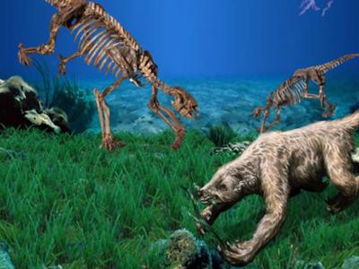 Skeletons and restoration of Thalassocnus, the marine sloth. Millions of y...