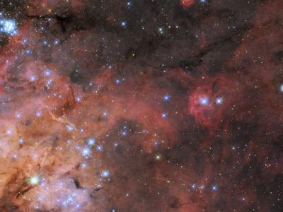 该星云距离地球5500光年,位于人马星座,这个直径15光年的梦幻般星云近期又形成了许多超大质量的炽热恒星,婴儿恒星释放的强烈光线和宇宙风与灰尘气体结构相辅相成,刻画出一幅美丽而壮观的宇宙景象。