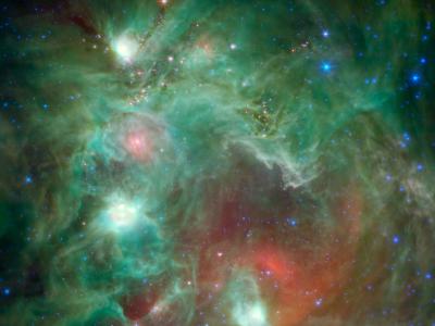目前最新拍摄的欧米加星云图像是由智利欧洲南方天气台新技术望远镜的多功能仪器拍摄的,显示出该星云中部区域详细的情况。如图所示,欧米加星云的多彩色调是由氢、氧、氮和硫气体形成的,它们在炽热年轻恒星辐射的强烈紫外光线下发亮。