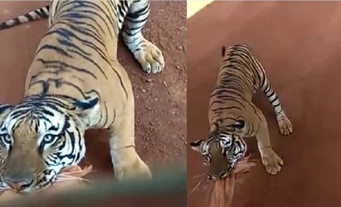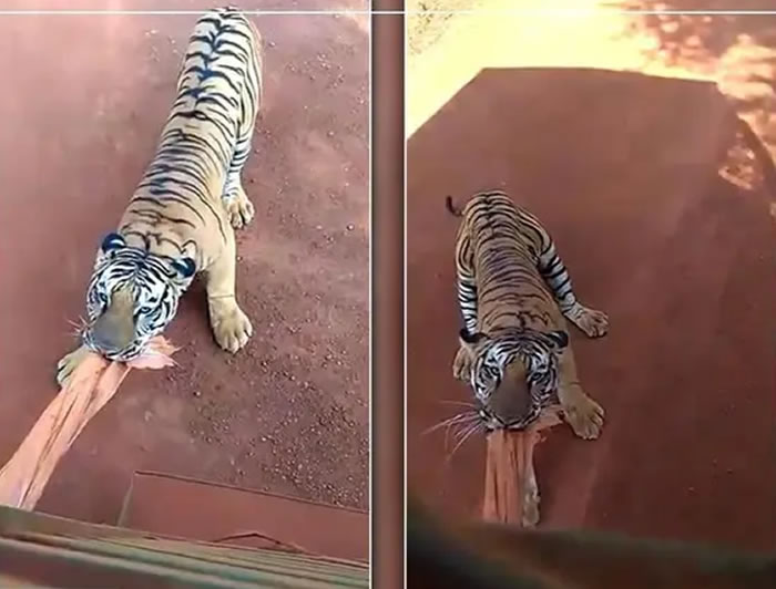 事件14日发生在恰蒂斯加尔邦赖普尔市(Raipur)的野生动物园,从影片中可看到,一只老虎被不断晃动的窗帘吸引,紧紧咬住不愿松口,后方突然冲出一只老虎想要抢夺,司机趁2只老虎互不相让时赶紧加速逃走,没想到老虎听到动静又跑回来咬住窗帘,一路紧追着车子。