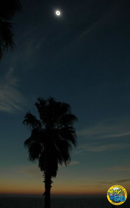 用相机直接拍摄还可以实现许多创意摄影。最经典的是拍摄日全食的糖葫芦串像。下图就是2005年10月3日西班牙马德里上空发生日环食时的情景。