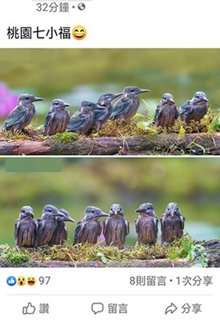 (神秘的地球uux.cn报道)据ETtoday(实习记者 吕欣潞):近日鸟友社团流传一张「7只翠鸟雏鸟列队排站」的影像,却被不少专业人士质疑这是人为营造出来的画面。一名李姓网友指出,翠鸟这时期的雏鸟,要在土洞中等到可以飞了才会离巢,「这种10只鸟站一起的,很明显就是把鸟从鸟巢掏出来的!」
