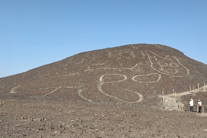 根据BBC报导,秘鲁文化部考古学家于首都利马(Lima)以南约400公里的伊卡沙漠(Ica Desert)中发现,在非常陡峭的山坡上有一个几乎快看不见的地面图形痕迹,透过工作人员一周以来持续的清理与保护,现在已能看清楚这只拥有2000年历史的「巨型猫咪」的轮廓,总长约37公尺,每条线约30到34公分宽,与其他「纳斯卡线」图腾相当接近。