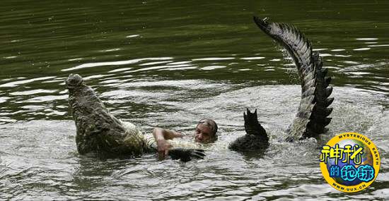 与鳄鱼一同游泳、嬉戏甚至给它喂食、亲吻