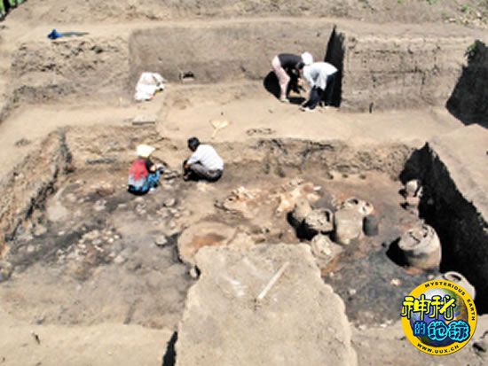 在延吉市小营镇长东村南山坡上,一处古人类遗址不久前被考古人员发掘。8月25日上午,记者在挖掘现场看到,山坡上被挖出一个很深的大坑,坑里各种各样的坛坛罐罐已被挖掘出土,有的已七零八碎,但还有多件十分完整。考古人员正顶着烈日小心翼翼地挖掘文物。在房址中央有一个很大的圆盘特别醒目,据延吉市文物管理所所长高永洙介绍,这处房址是目前发掘得十分完整的古人类住所,在全省尚属首例,中间圆盘是古人烧火用的灶台,以前我们发掘的灶台下面没有鹅卵石,而这处灶台下面铺了一层厚厚的鹅卵石后,又在上面涂上泥土,然后在上面烧火烤肉,这是古人特别典型的一种文化。考古人员在旁边还发掘了有刃石头,是古人烤完肉后用来割肉吃的,房址里能见到许多兽骨,里面还有两个磨盘。