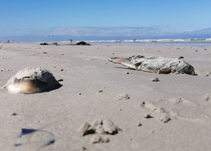 每日星报报导,英国葛来德利博士(Tess Gridley)前阵子来到开普敦进行实地考察工作,但就在与家人外出散步时,突然发现距离家中约200公尺的海滩上,出现数百条搁浅的河豚。据统计,沿岸每公里出现约300只至400只左右的河豚尸体,南非环境林业及渔业部现已证实此事,但强调并非不利水质条件或赤潮所导致,正持续监控中。