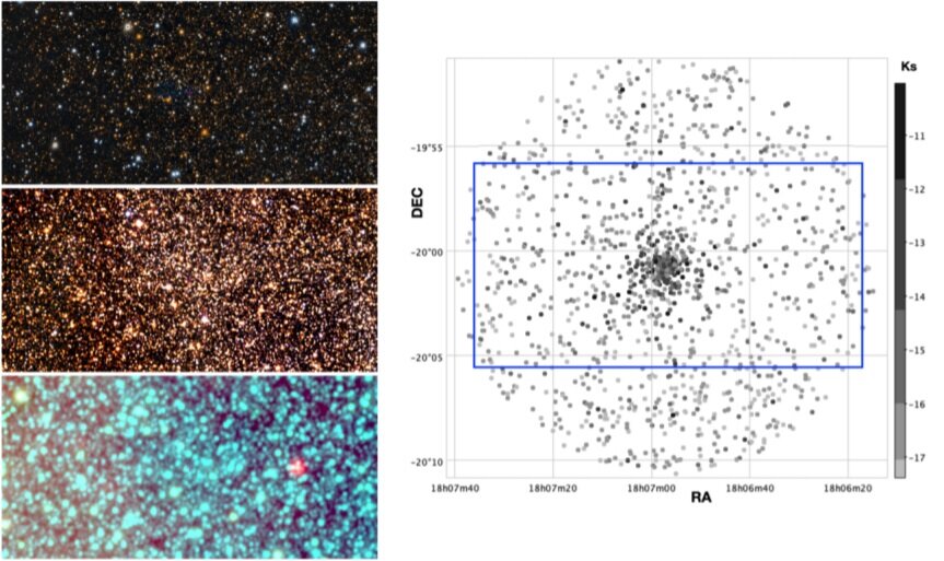 球状星团因其外形类似球形而得名。它们由成千上万甚至数十万颗恒星组成,外貌呈球形,越往中心恒星越密集。目前已知球状星团里的恒星平均密度,甚至比太阳周围的恒星密度高数十倍,而它的中心附近则要大数万倍。此前研究认为,同一个球状星团内的恒星具有相同的演化历程,运动方向和速度都大致相同,它们很可能是在同时期形成的。
