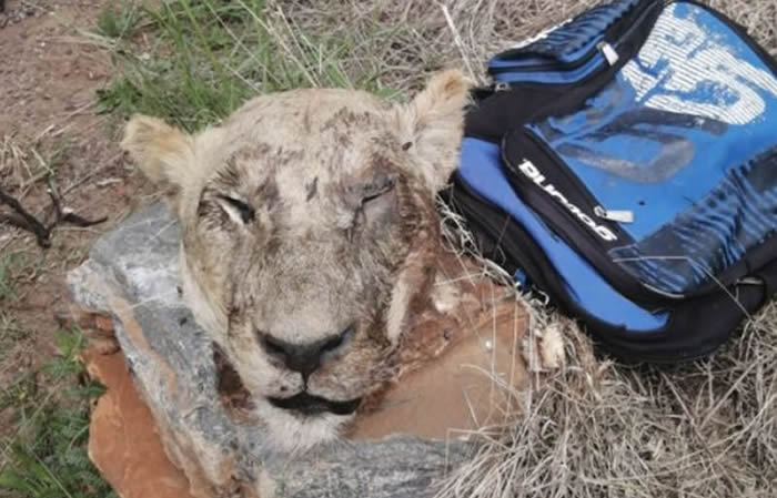 南非警察接获报案搜查 打开一个背包时发现里面竟然装着一颗狮子断头
