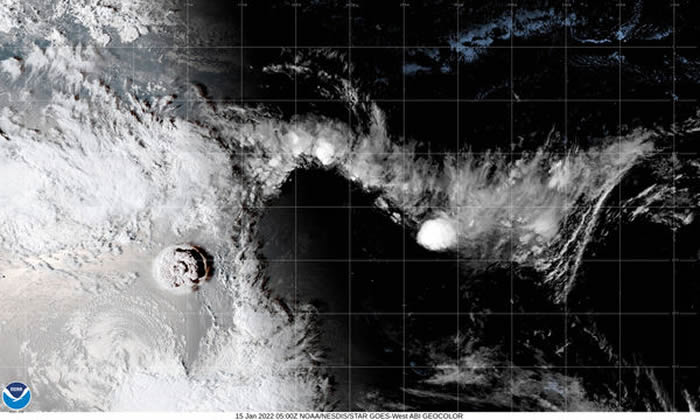 卫星实拍汤加海底火山大爆发 海啸扑向全太平洋