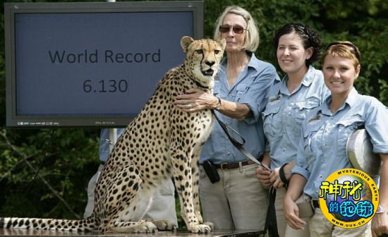 “‘猎豹超越’计划的猎豹‘恩雅娜’(Nyana)在2001年创造了6.19秒的纪录,我们很高兴打破了这一纪录。”“莎拉”是辛辛那提动物园饲养的第二头保持百米世界纪录的猎豹。第一头猎豹“莫亚”(Moya)曾在2000年以6.6秒打破了百米纪录。虽然“莎拉”的奔跑极具爆发力,但仍未能达到猎豹每小时70英里(约合每小时113公里)的最高奔跑速度。