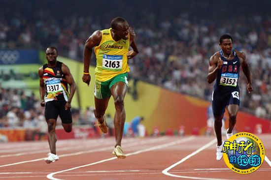 牙买加飞人乌塞恩·博尔特(中)