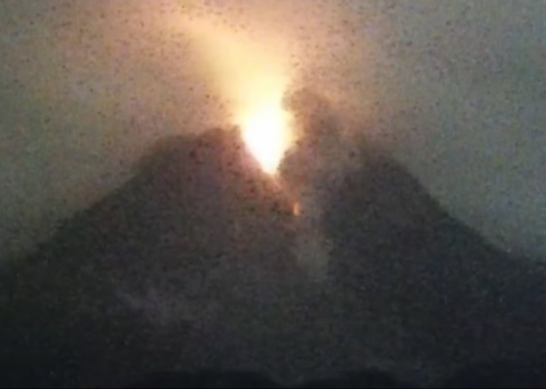 印尼爪哇岛最活跃的默拉皮火山爆发 大量火山灰喷出