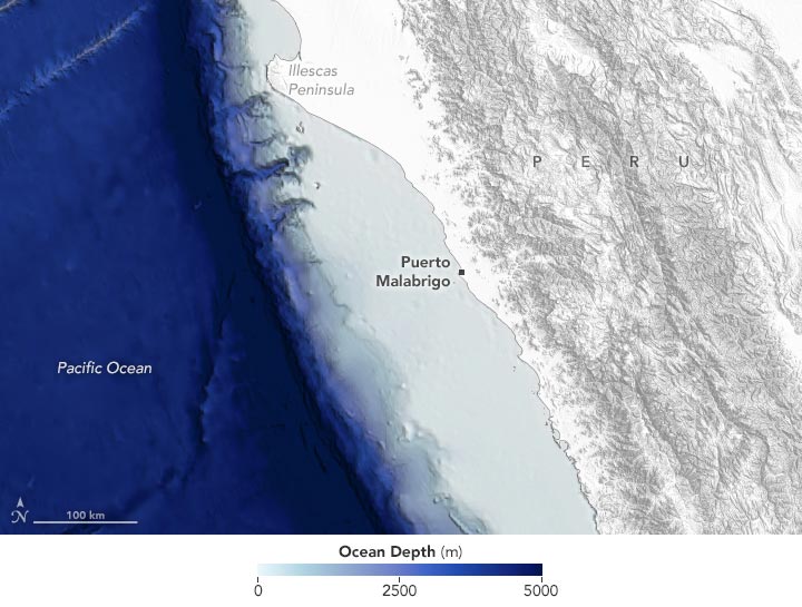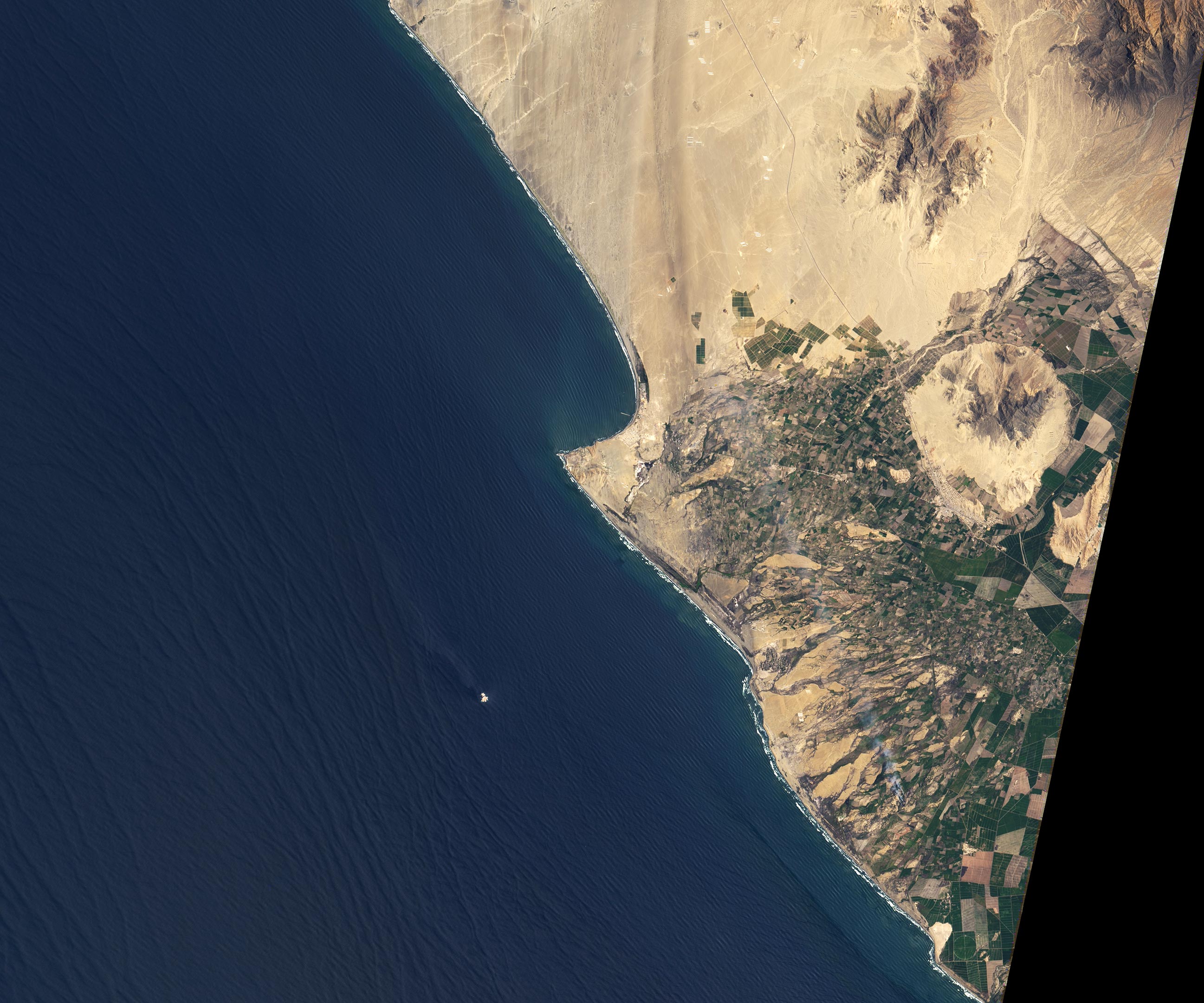2021年3月23日,Landsat 8上的Operational Land Imager(OLI)获取的这张图片中,可以看到Chicama著名海浪的海浪。