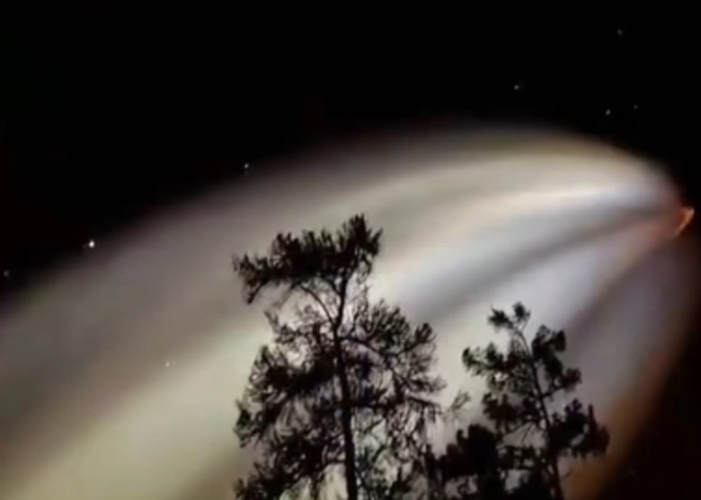 从民众拍摄的影片可以发现,拖着白色扇形尾部气流的「不明飞行物」飞行速度并不快,用肉眼便可察觉。由于夜空较黑,再加上白光耀眼夺目,不明飞行物的本体无法分辨,更增添了几分UFO(外星人飞碟)造访地球的神秘性。