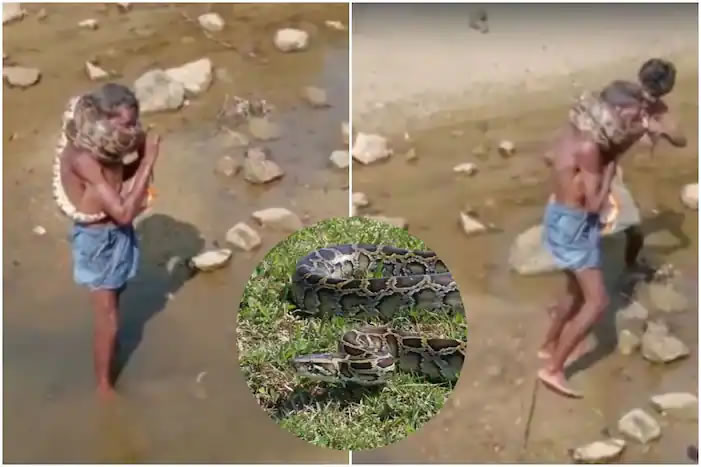 事件发生在加尔赫瓦县(Garhwa)Parihara Panchayat区,影片中可看到,男子比贾拉勒(Birjalal Ram Bhuiyan)整个脖子包含脸都被巨蟒紧紧缠住,快要不能呼吸,他试图把巨蟒扯下来但是无法,眼看就快要被勒死。