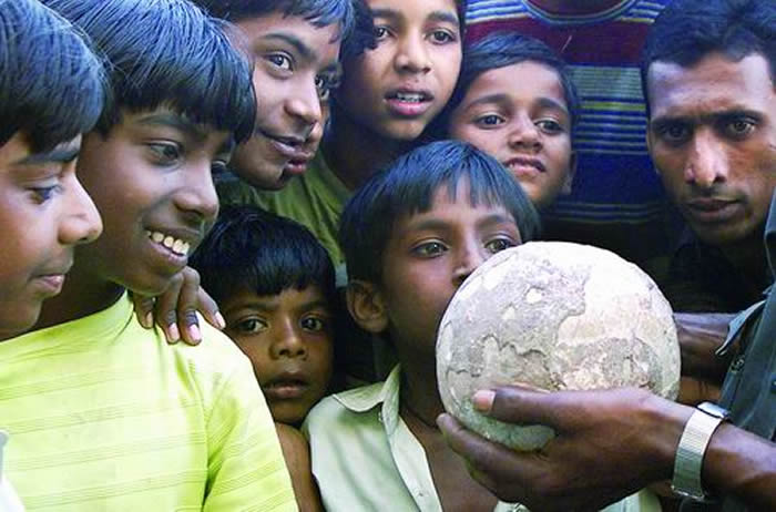 2004年,当地儿童在印度古吉拉特邦发现了一个恐龙蛋化石。图片来源:AMIT DAVE/REUTERS