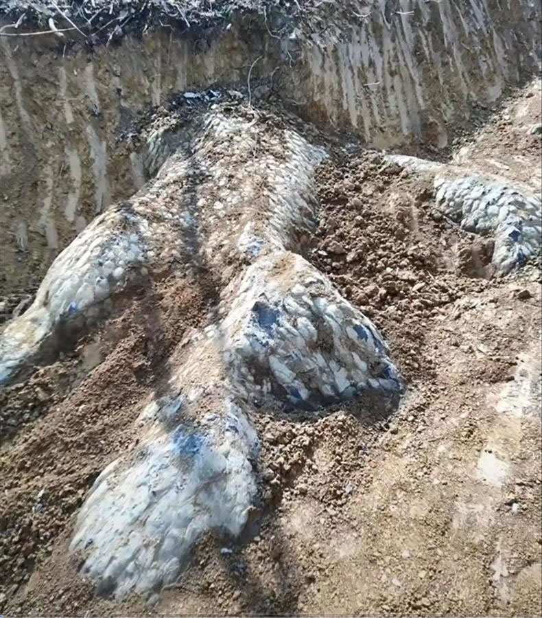 (神秘的地球uux.cn)据潇湘晨报:近日,湖南省武冈市马坪乡石地村,修路施工人员在作业过程中挖掘出一块形似“龙爪”的石头,表面似覆盖着“鳞片”,引发当地群众和网友关注。
