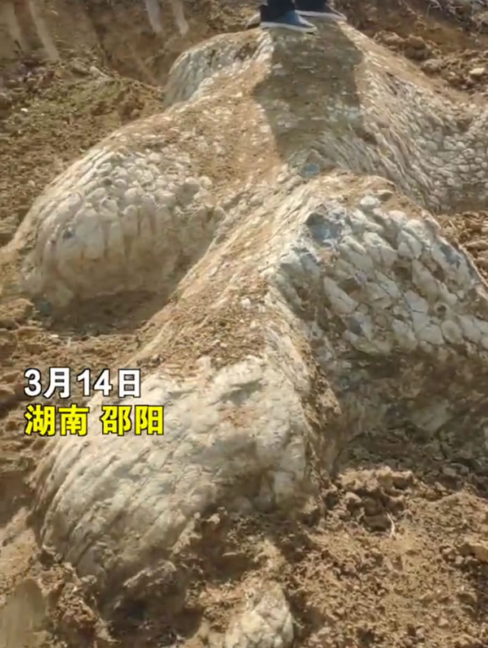 (神秘的地球uux.cn)据极目新闻(记者 张万军):近日,湖南省武冈市马坪乡石地村,修路施工人员在作业过程中挖掘出一块形似龙爪的石头,表面似覆盖着“鳞片”,引发当地群众和网友关注,不少网友纷纷前往当地打卡。3月15日,当地村委会负责人告诉极目新闻记者,经过武冈市文物保护部门初步勘探,“龙爪”石并非化石,只是形似龙爪而已。