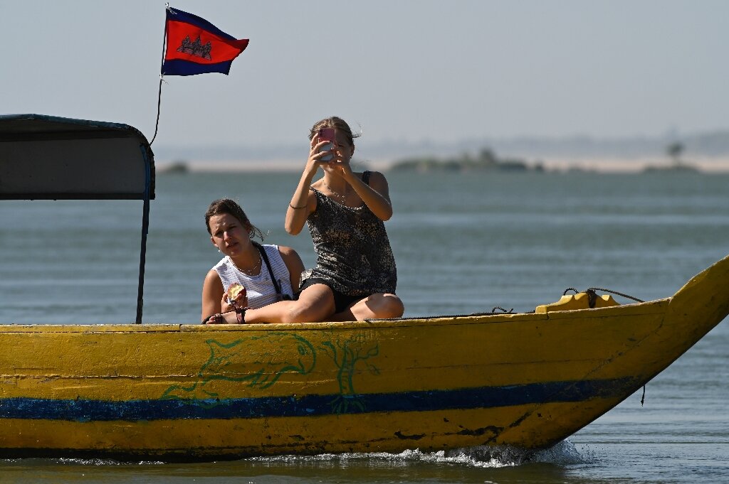 (神秘的地球uux.cn)据法新社(by Suy SE):当一群稀有的伊洛瓦底江海豚浮出水面呼吸时,凸出的灰色头颅打破了柬埔寨湄公河浑浊的水域,引来附近船只上观看的游客兴奋的低语。