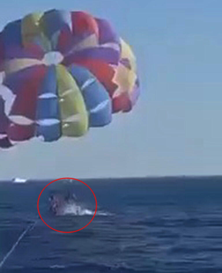 约旦男子在红海玩海上拖曳伞 鲨鱼冲出水面咬住他的脚