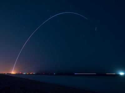 2023年3月22日,相对论空间公司的第一枚Terran 1火箭从佛罗里达州卡纳维拉尔角航天站首次试射,在这张长曝光照片中飞向太空。火箭未能进入轨道。(图片鸣谢:相对论空间)