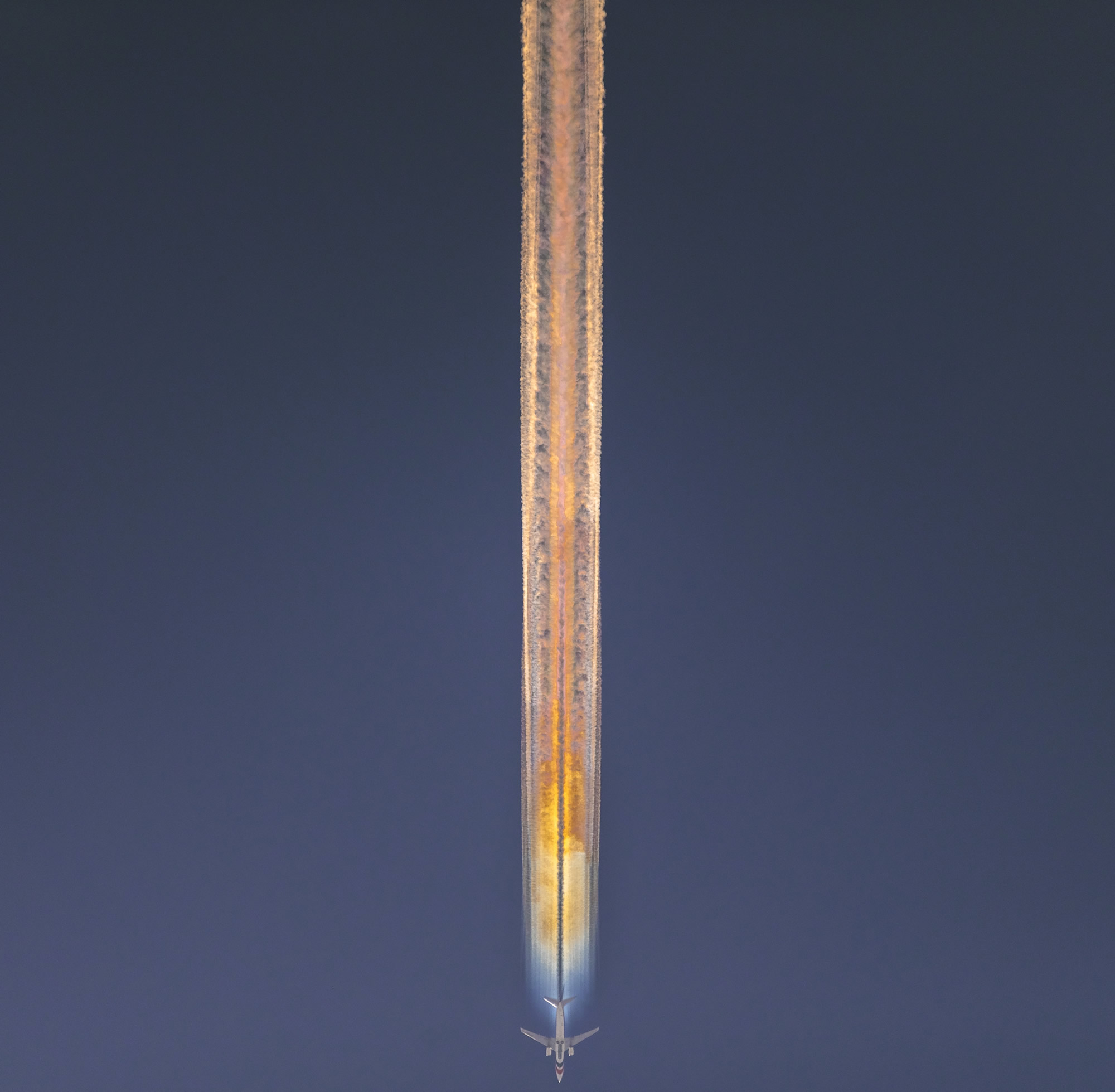 当冻结的水滴向同一方向衍射太阳光时,就会产生彩虹轨迹。根据《轨迹科学》,它们被称为空气动力学轨迹,是在机翼上的气压和温度下降时形成的,导致水蒸气冻结成不同大小的水滴。当太阳从背后照射时,这些冻结的水滴折射不同波长的光,对观察者来说就像彩虹一样。