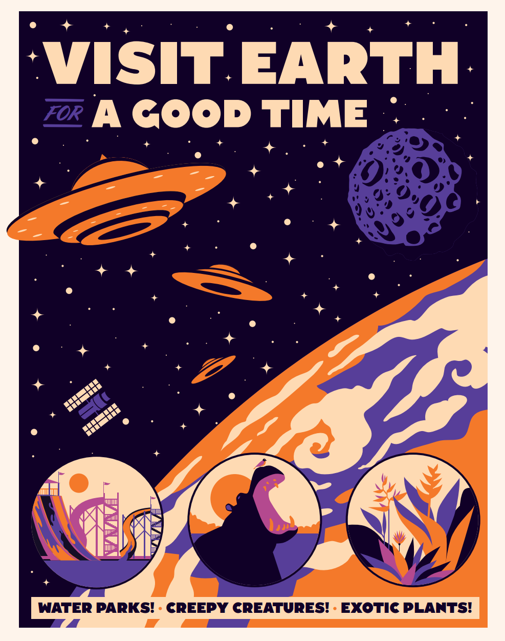 劳拉·克兰兹:我就是喜欢。我喜欢这些颜色。我喜欢这种块状插图风格。我只是觉得结果非常非常好。[插画家拉斐尔·诺布尔]也很有幽默感。就像他能把一些有趣的东西融入到很棒的照片中。就像有一个外星人试图烹饪生命的场景,我只是我喜欢那个。