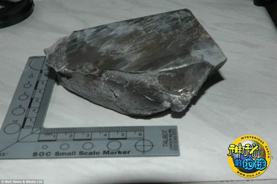亨伯赛德郡警方随后赶来,将这块黑灰色物体带走,接着又转交英国国防部调查。不久,韦尔顿和62岁的老伴马伊尔接到了英国皇家空军打来的电话,称金属碎片极有可能是太空垃圾。也就是说,它可能是飞船或废弃卫星等太空飞行器上面的东西。