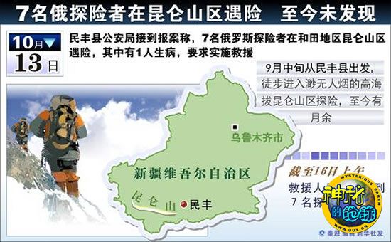 记者从新疆和田地委获悉,7名俄罗斯人在和田地区昆仑山区探险时遇险,民丰县13日接到报案后开始寻找,截至16日上午,救援人员仍未找到7名探险者。