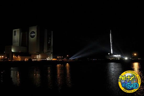 夜幕中,战神火箭被运往发射台
