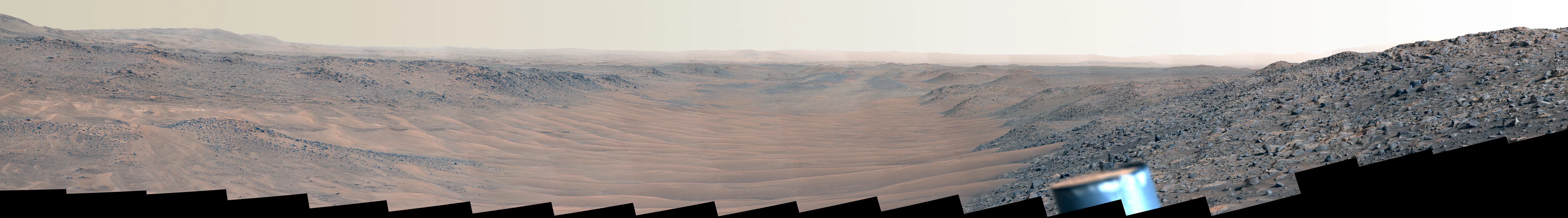 5月17日,毅力号在沙丘密布的内雷特瓦-瓦利斯河河道下游拍摄到了这张马赛克照片。数十亿年前,这条通道为杰泽罗陨石坑提供了淡水。图像:uux.cn/NASA/JPL加州理工学院/ASU/MSS