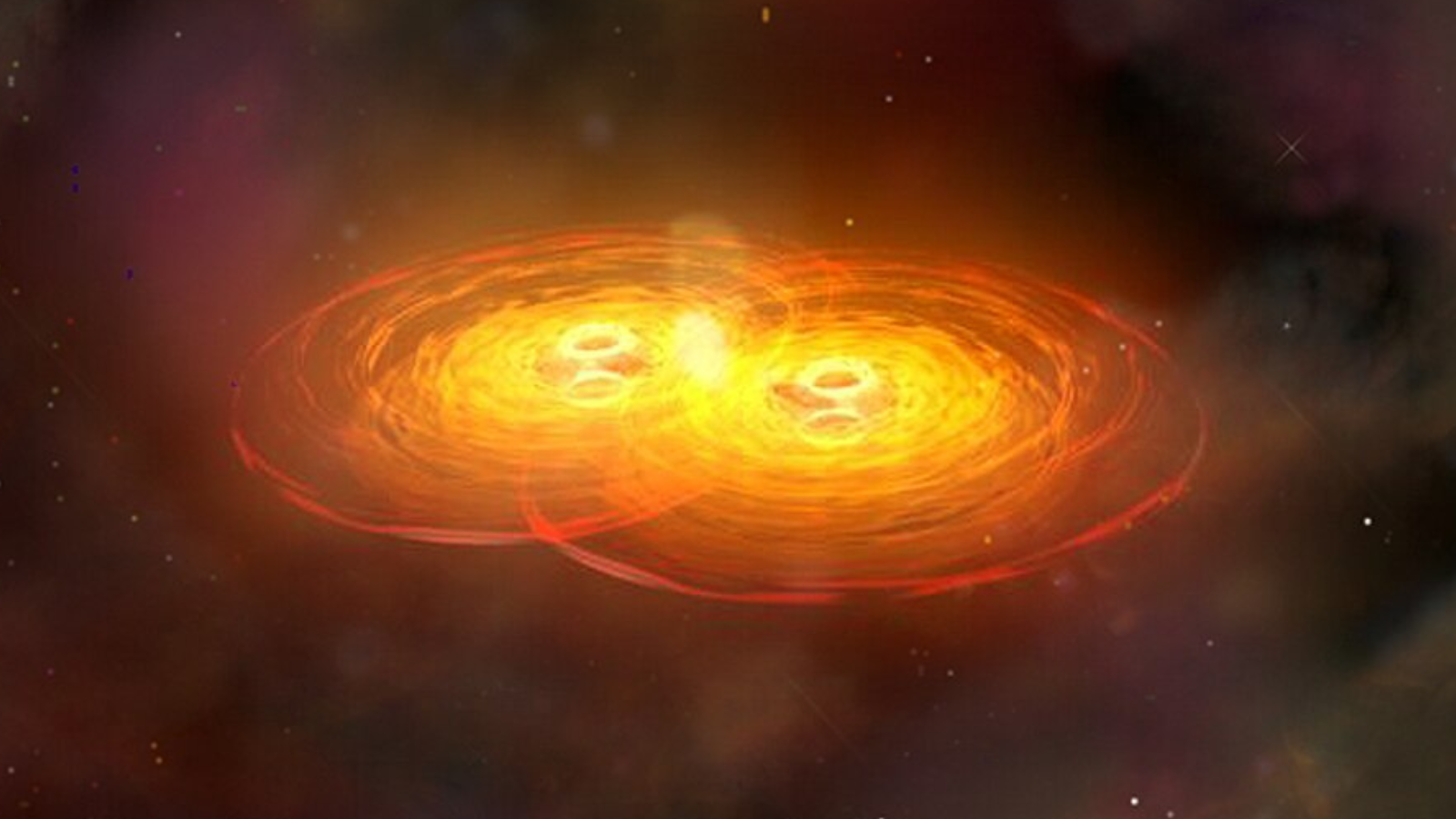 例如,当这些物体存在于双星系统中时——这意味着其中两个物体不断地相互加速——它们不断地发射引力波,直到最终碰撞并发出这些涟漪的高音“尖叫”。