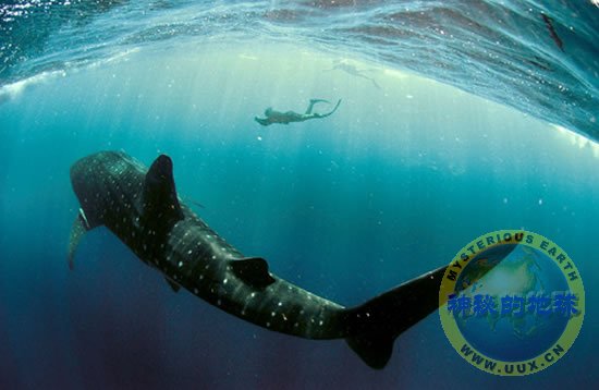 Weighing up to 60 tons, whale sharks are the biggest fish in the sea—and fortunately for the diver—their favorite food is plankton.