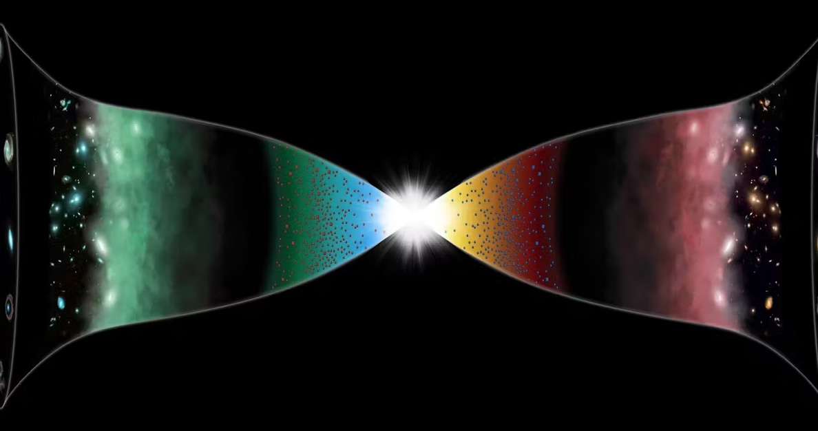 把大爆炸想象成一面镜子,可以很好地解释宇宙的许多特征,否则这些特征可能会与最基本的物理定律相冲突。例如,对于每一个物理过程,量子理论都允许一个“镜像”过程,在这个过程中,空间被反转,时间被反转,每个粒子都被其反粒子(一种在几乎所有方面都与之相似的粒子,但带有相反的电荷)所取代。