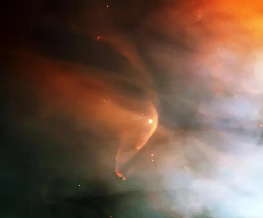 哈勃望远镜看到的年轻恒星LL Ori及其周围的弓形激波(图片来源:uux.cn美国国家航空航天局和哈勃遗产团队(STScI/AURA);致谢:C.R.O'Dell(范德比尔特大学)