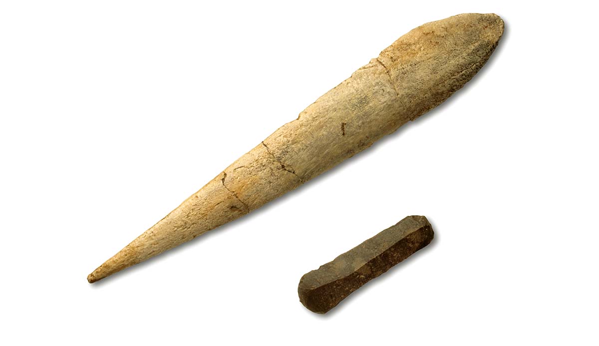 骨头、鹿角和象牙工具在欧洲的奥氏文化阶段变得更加普遍。这个骨尖和刮骨器的历史可以追溯到35000年左右。uux.cn
