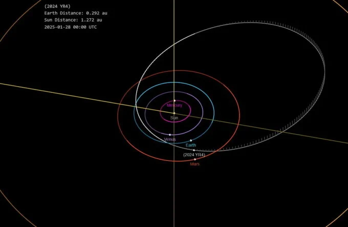 2月18日,美国国家航空航天局和欧洲航天局宣布,小行星2024 YR4在2023年撞击地球的概率为3.1%,是有史以来这种大小物体的最高记录。这表示赔率为1/32。相比之下,在美国,死于机动车碰撞的几率为1%,即95%;小行星撞击地球的可能性相当大。