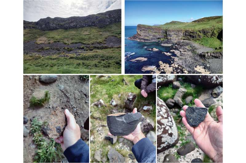 在北爱尔兰Giant堤道附近发现的天然产生的锋利边缘玄武岩标本(最下面一排)的例子。这些标本似乎是通过向下滚动过程和海岸作用产生的。(图片由Michelle R.Bebber和Metin I.Eren提供)。来源:uux.cn考古学(2025)。DOI: 10.1111/arcm.13075