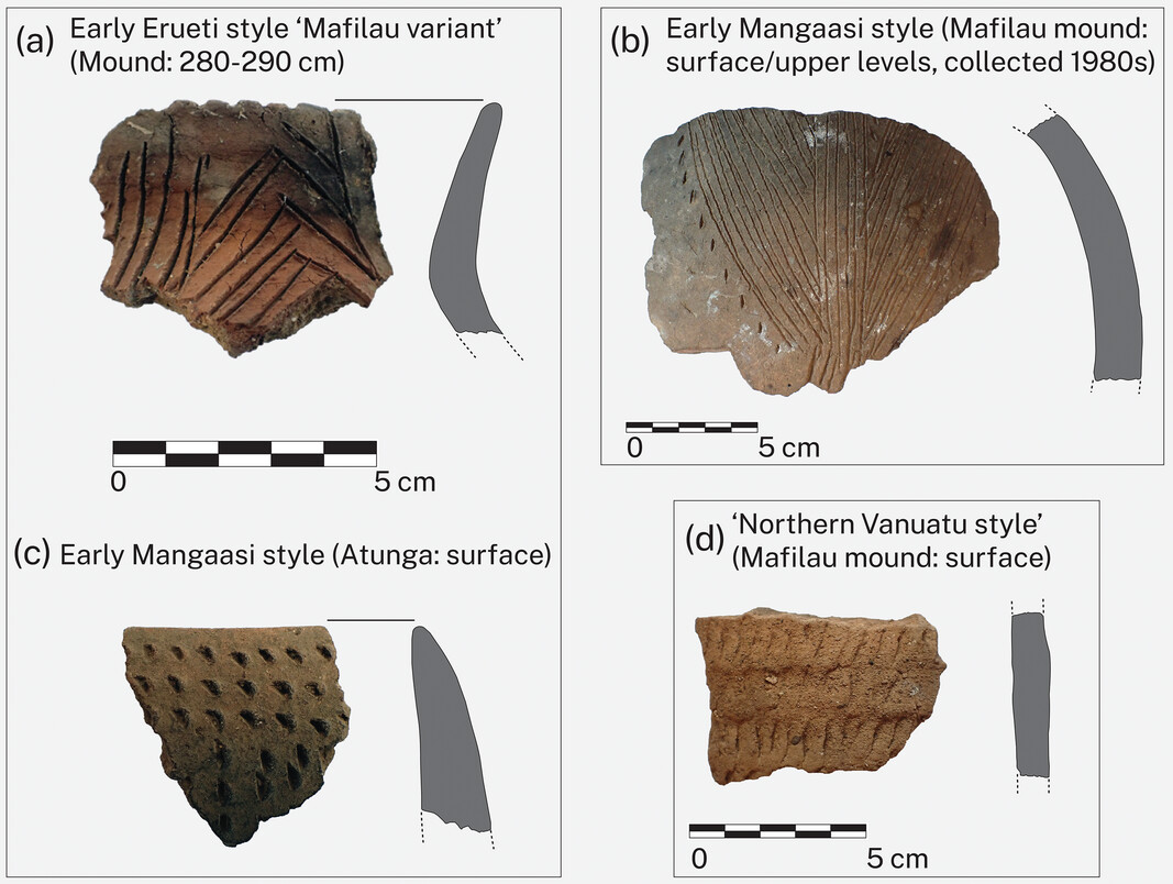 (a) 马菲劳丘的早期Erueti风格的陶器(b)马菲劳教堂遗址的早期Mangaasi风格的陶器。来源:uux.cn大洋洲考古学(2025)。DOI:10.1002/arco.5346