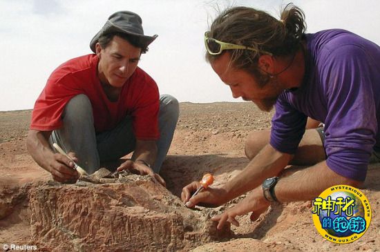 保罗·塞利诺教授和汉斯·拉尔森副教授在尼尔日挖掘1亿年前的头骨化石