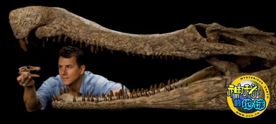 据介绍,在距今大约1亿年前,这些可怕的食肉动物穿梭在非洲沼泽地、湖泊,四处寻找小恐龙,并以鱼、蛴螬为食。与现代鳄鱼不同,史前鳄鱼在陆地的活动同它们在水中一样的敏捷。史前鳄鱼化石残骸是美国芝加哥大学古生物学家保罗·塞利诺(Paul Sereno)博士在非洲撒哈拉沙漠发现的,他也是世界上最著名的“化石猎人”之一。